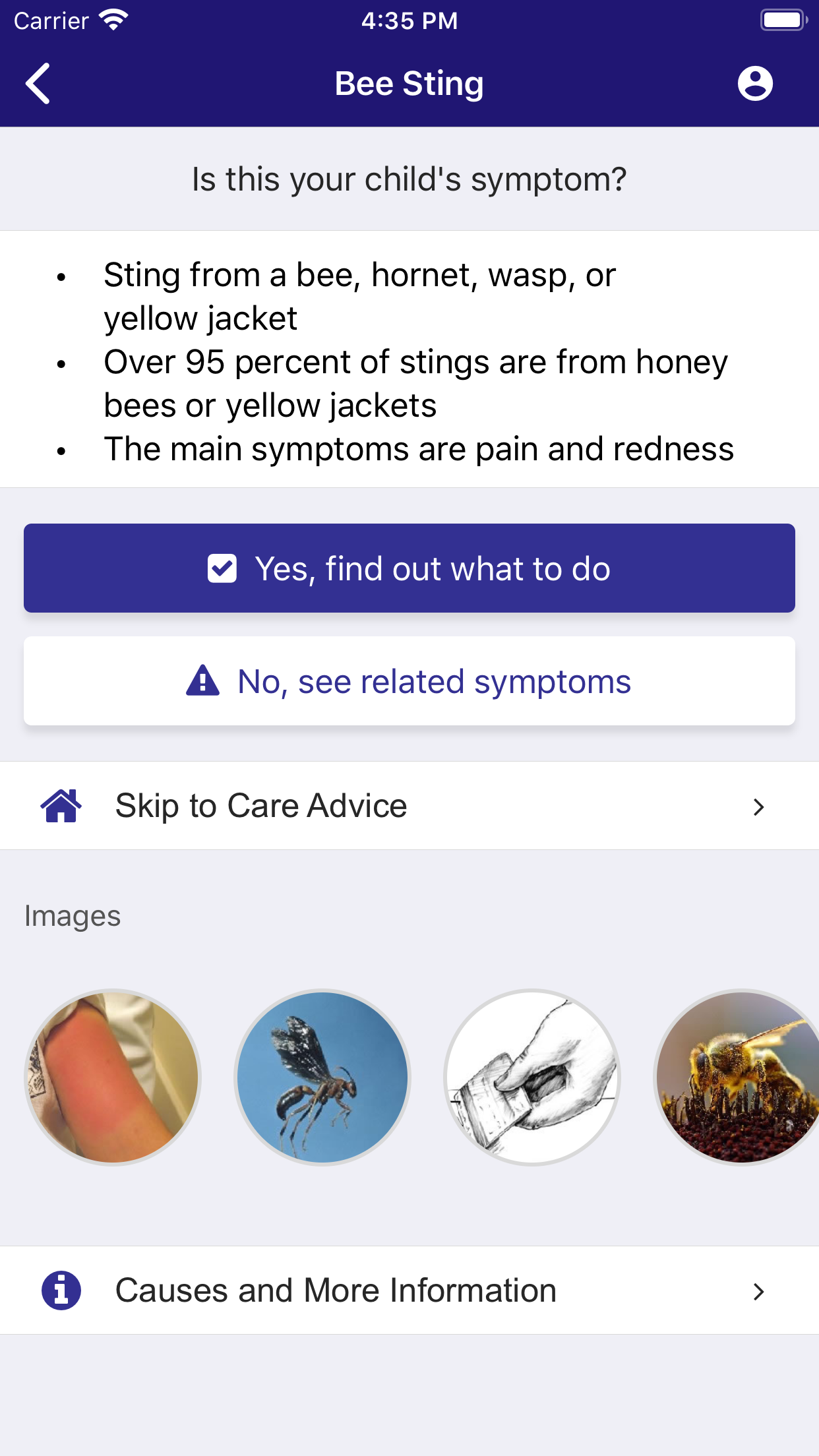 • Symptoms – for help deciding what to do when your child is sick or hurt