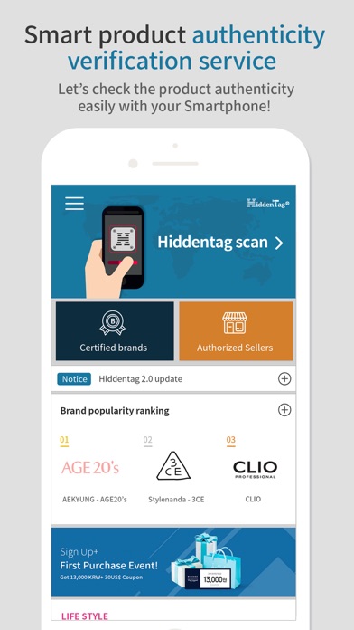 Here are some brands that can verify the authenticity with HiddenTag. Claire, Clio, Aekyung, 3CE, Benton, YG Entertainment and more than 300 companies are using HiddenTag.