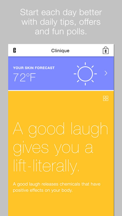 The Clinique App offers you daily posts, quick tips and simple tricks for your unique skin type, so you can put your freshest face forward. You get: