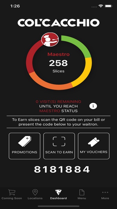 Download COL’CACCHIO REWARDS and start earning slices for every visit and bonus slices for every Rand spent. To unlock even more rewards, move from Apprentice to Maestro status by visiting our stores more often.