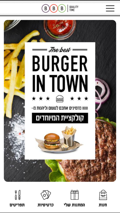 ברוכים הבאים! הורידו את אפליקציית BBB, רשת מסעדות ההמבורגרים, ותהנו מעולם שלם של הטבות ופינוקים.