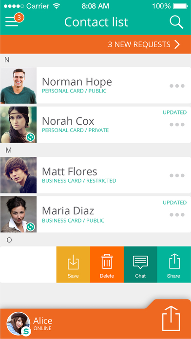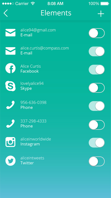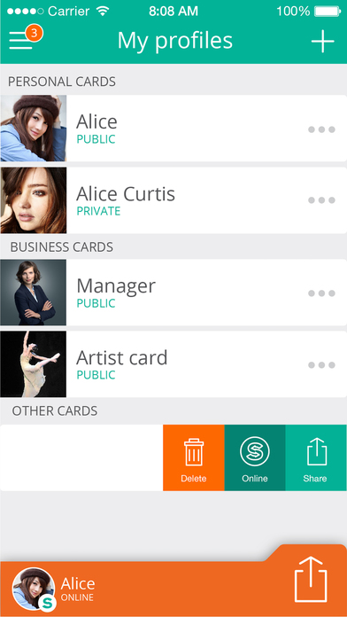 - you can create different cards to share with different groups of your acquaintances, such as friends, business partners, sport mates, relatives etc.