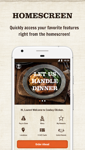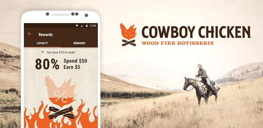 Welcome to the NEW and IMPROVED Cowboy Chicken app! When it is time to eat, it’s good to have an ace up your sleeve. Get through the line quickly and securely by scanning your phone at the register, or Order Ahead and walk right to the pick up area. No wallet required! Best of all, for every $50 you spend, you get $5 in credit to be used for your next in-store or Order Ahead purchase with the app.