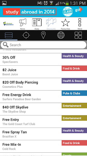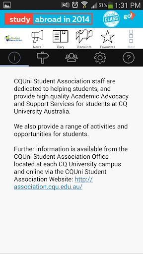 The CQUSA eDiary smartphone application, brought to you by the CQUni Student Association provides the ultimate way to interact with student life. The application gives you the ability to build your student diary around your own specific interests. Connect with only the clubs and societies you choose, manage your lectures and deadlines and find out about the latest events and parties. View your campus map and access the list of key contacts relating to your life on campus. Through your GPS discount locator you will always have the best discounts at hand no matter where you are. Oh... and it’s FREE! ;)