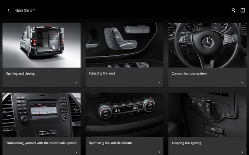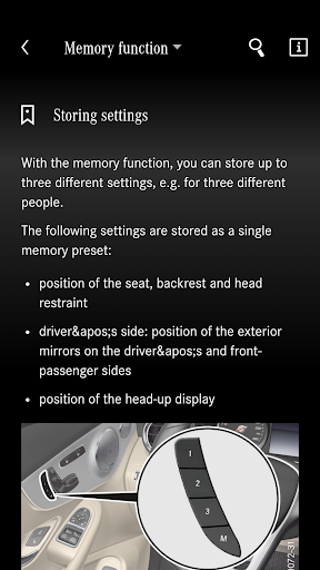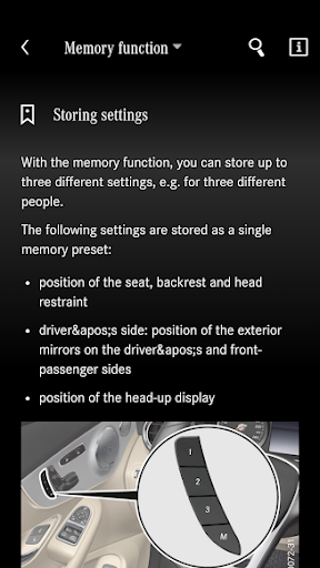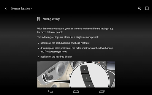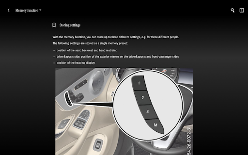 The guide of each individual model may contain information relevant to operation, as well as images and video clips regarding the vehicle's equipment. A search function is used to access this content. Except for video clips, the content can be accessed offline once a specific guide has been downloaded.