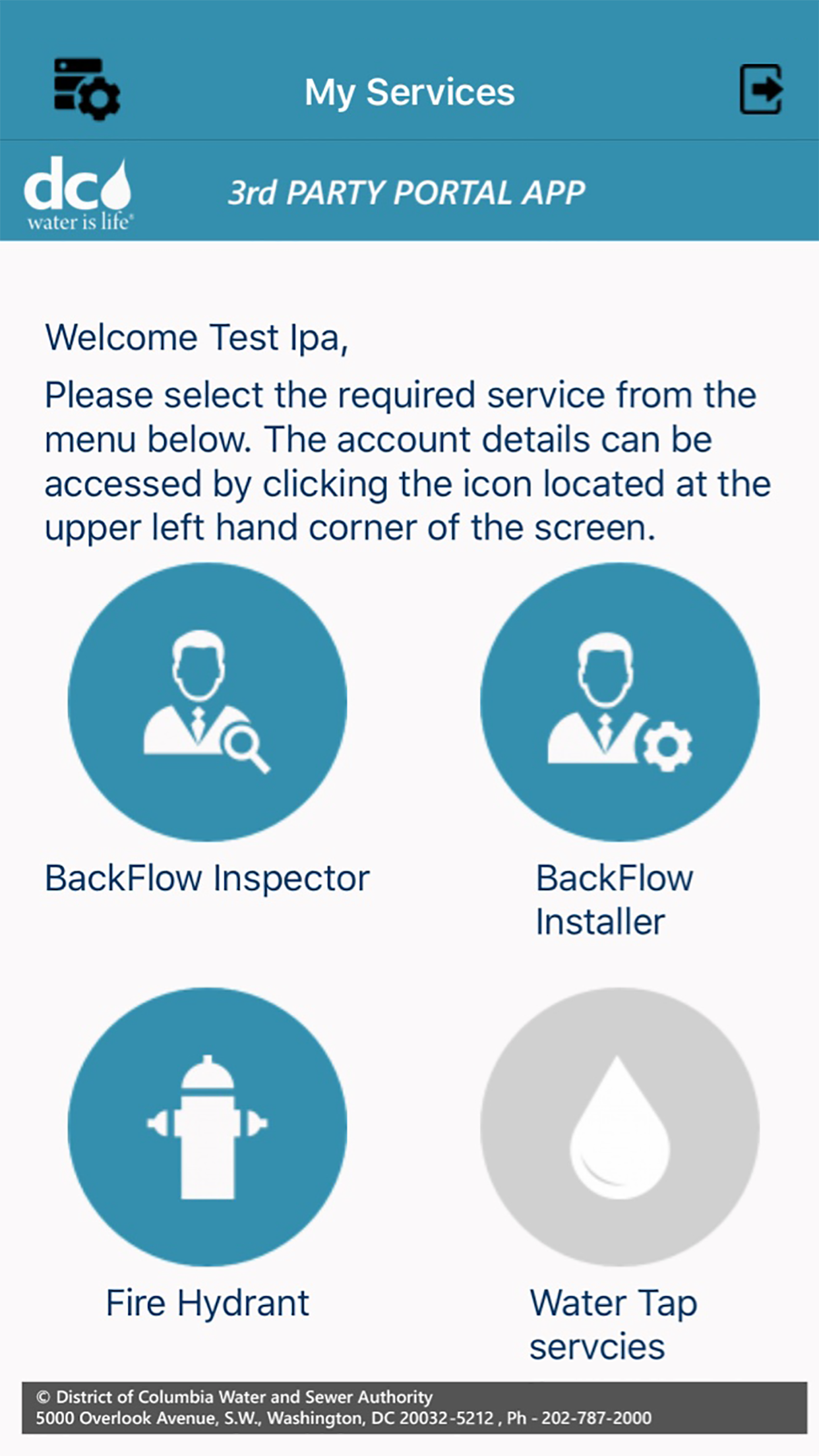 An app developed by DC Water to process services provided by 3rd party partners of DC Water