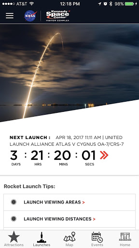 • Enhance your visit with information on guest services, dining and shopping, and notification options for updated information including rocket launches.