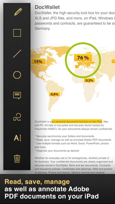 DocWallet is your personal document lock box on the iPad, Mac and PC. All data is encrypted and securely stored (tested by Fraunhofer AISEC). So your documents always remain confidential.