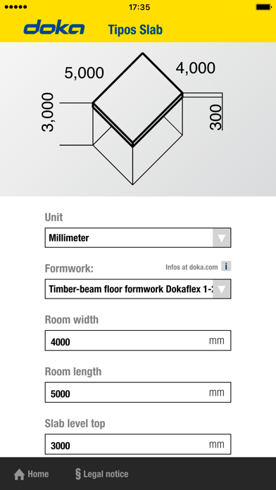 The Doka Tools app is a digital calculation tool for your site. Time-consuming, labour-intensive methods of calculating the optimum equipment quantities are now a thing of the past. With Doka Tools you can plan wall and floor formwork: it takes just a couple of seconds to optimise the components for Dokaflex and to work out the permitted rate of placing and maximum fresh-concrete pressure during pouring.