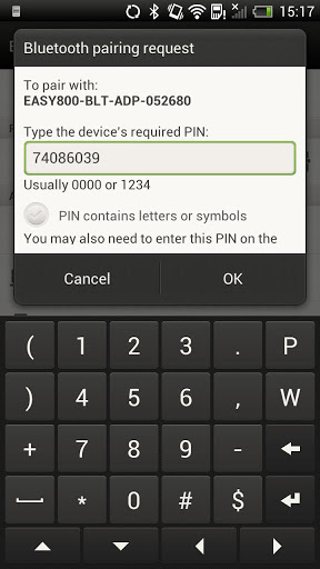 • Enter the Bluetooth adapter’s 8-digit PIN to establish a secure Bluetooth connection (pairing)