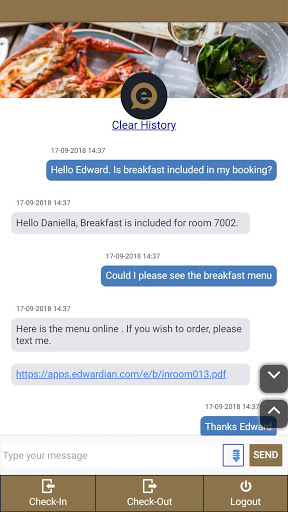 Edward™, the virtual host, is a Chatbot application that enables Edwardian Hotels London guests to obtain personalised information and assistance. The app enables our guests to enhance their experience and get their questions answered faster and their requests for service directed to the right hotel staff instantly.