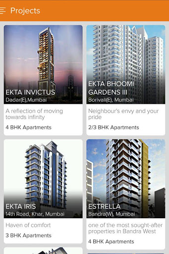 The genesis of EKTA group dates back to the year 1987. Since then the company has grown from strength to strength. Making each project a memorable part of the city skyline, the group has not just built remarkable structures but has also built a reputation that is as solid. Today the group prides itself to be among the top priorities of discerning buyers across cities like Mumbai and Pune. With every new project the group has consciously worked towards being more and more environment responsible. Quality is perhaps the most widely used terms, but Ekta lets its standards do the talking.