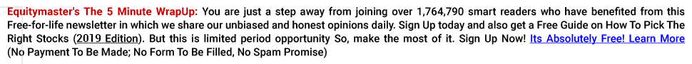 The 5 Minute WrapUp: Equitymaster’s Daily Free-for-life e-Newsletter that covers news and opinions which could have an impact on your investments. Access it on the go!