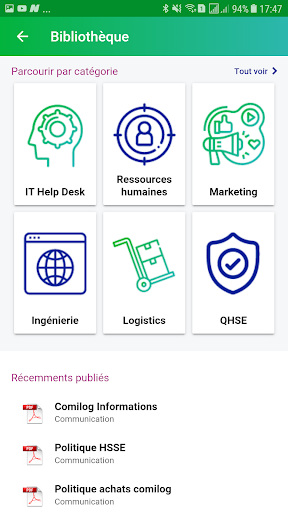 Elle permettra à l’ensemble des salariés de la COMILOG, où qu'ils se trouvent, d’obtenir des informations quotidiennes de l'entreprise à travers différents formats (articles, brèves, vidéos, audio podcasts, photos, documents de type PDF). Les salariés auront également la possibilité de réagir (liker) à certaines publications, d'apporter des suggestions à travers le module « Contact » et de se procurer des gadgets via la boutique en ligne COMILOG.