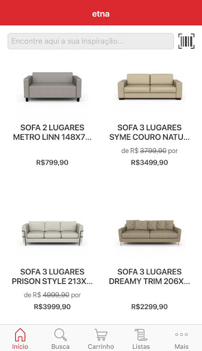 Atualizamos o app para melhorar sua experiência com a Etna. Agora, além de comprar móveis, itens de decoração, cama e banho, utilidades domésticas você também pode: