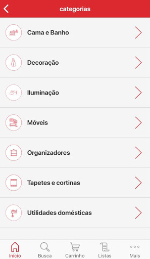 Em nossas lojas, o cliente encontra tudo o que precisa para o seu lar: contamos com setores de mÑveis, decoraÜo, cama, mesa e banho, utilidades, iluminaÜo, tapetes e cortinas, _tnico, infantil, ñgardenî (artigos para jardim) e office (artigos de escritÑrio).