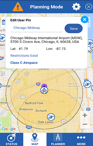 - Map Interface to plot nearby flight restrictions