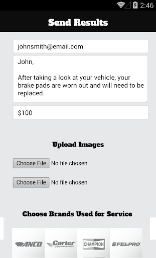 •Save time! You can instantly send your customers their vehicle inspection results along with multiple photos showing any worn parts and your complete repair estimate. The customer is able to view on their mobile device or desktop and respond instantly via email or callback buttons to ask questions and/or authorize the repair.