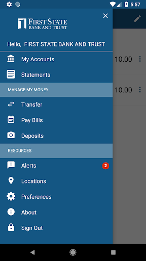 FSBT is a mobile banking solution that enables First State Bank and Trust internet banking customers to use their Android to initiate routine transactions and conduct research anytime, from anywhere. Customers can view account balances and transaction history, view account alerts, initiate account transfers, pay bills and deposit checks. There will be a business day delay before you can deposit checks into a personal checking. Please contact the bank if you want to deposit checks for your business.