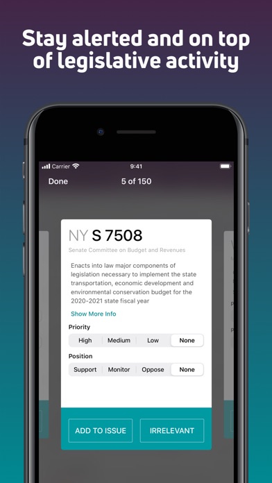 FiscalNote Issues Management Platform provides data, workflow, and analytics designed to help organizations of all shapes and sizes effectively manage the impact of the outside world. With FiscalNote for iOS, we help you manage all of the disparate work you do in response to issues by allowing you to discover key information, assess its impact, engage stakeholders, and measure your results.