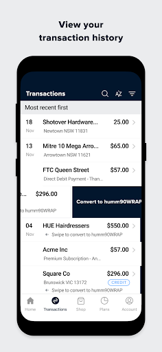 • Convert a card purchase to an Interest Free Instalment Plan (humm90WRAP).