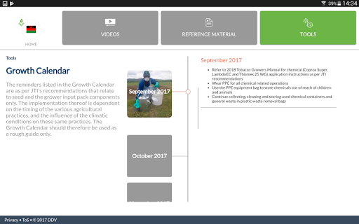 This user-friendly procedure is designed in such a way as to ensure that the JTI technician is familiar with the Grower Input Pack, the components and the related instructional documentation. The step-by-step process will provide the JTI technician with a full understanding of an integrated approach to efficient, controlled, safe and above all, compliant use of the related agrochemicals. This same information may then be imparted to growers contracted to JTI thereby safeguarding their tobacco crop against potential diseases and pests.