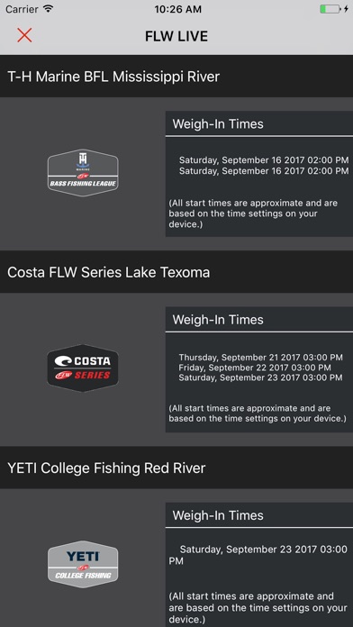 - Live video and weigh-in data for FLW fishing tournaments