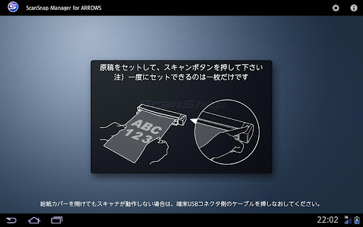 ScanSnap Manager for ARROWSは、富士通製タブレット端末「ARROWS Tab」と世界最小クラスのモバイルスキャナ「ScanSnap S1100」をUSB接続して直接スキャンすることができるアプリケーションです。