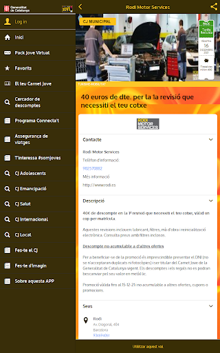 – Es pot cercar tota la informació dels més de 8.000 descomptes que ofereix el carnet arreu de Catalunya, i utilitzar-los des del propi mòbil, acreditant-se amb el CARNET JOVE VIRTUAL.