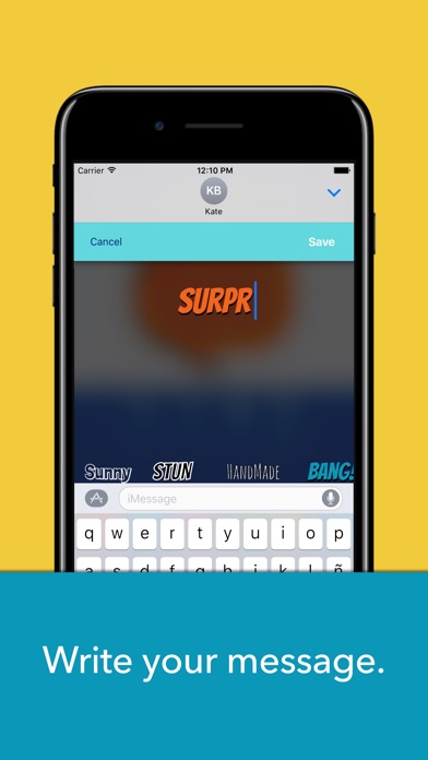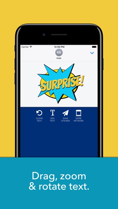 With this iMessage app you can create amazing stickers by adding several layers of text, using different styles and colors, and zooming or rotating them to achieve the desired effect.