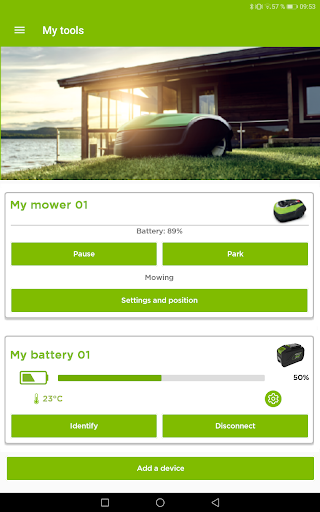 The official Greenworks app provides useful tools for connecting and communicating with Greenworks and Greenworks Pro Optimow robotic lawn mowers, ride-on mowers, batteries, and more. The app is packed with useful tools and functions. Overall, you can register products, get digital copies of your owners manuals and much more.