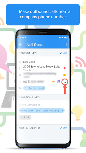 - Use the app to call leads or customers from a company phone number instead of their mobile phone