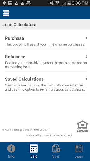 Welcome to Guild Mortgage's Mobile Mortgage Calculator. This tool will help you make an educated decision of what the monthly cost of a new home will be in seconds. We hope you enjoy just how easy calculating the estimate of your new home can be.