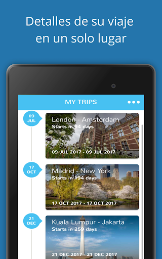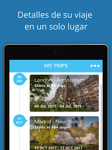 • ¡Manténgase organizado! Guarde itinerarios de viaje en su lista de viajes personales y vea viajes pasados, actuales y futuros
