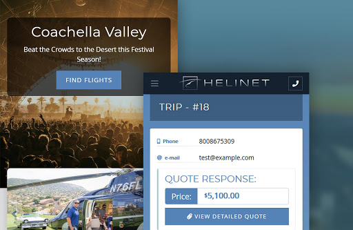 Save hours of travel time with the Helinet Charter App! Search dozens of destinations and pricing options for our fleet of twin-engine Helicopters in minutes. With Helinet’s Charter App, finding pricing and booking your next helicopter flight is a quick and seamless process.