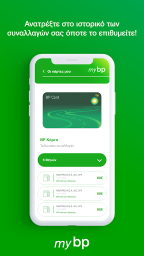 Ανατρέξτε στο ιστορικό των συναλλαγών σας και δείτε λεπτομερείς πληροφορίες σχετικά με τις δαπάνες των καυσίμων σας, ενώ παράλληλα μπορείτε να περιηγηθείτε στον διαδραστικό χάρτη για να εντοπίστε το πλησιέστερο πρατήριο bp που σας εξυπηρετεί.