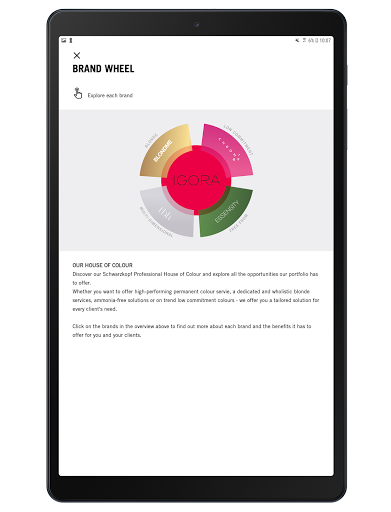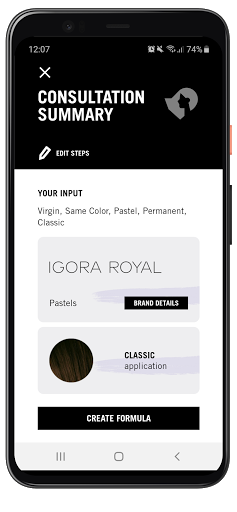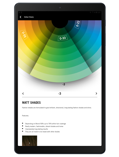 The detailed client consultation helps you to determine the perfect colour brand for each of your clients - whether it is a classic permanent colouration, an ammonia-free service or a 10 minute colour for a quick root retouch. The quick formula finder enables you to create the perfect colour formulas based on your clients’ profile, their individual needs and hair types. An engaging colour fundamentals section allows you to learn more about the colour circle, the numbering system and how to optimize your colour service. Soon-to-come features will be an inspiring tutorial sections as well as a detailed shade & conversion guide.