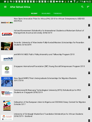 Founded in 2009, AfterSchoolAfrica.com (ASA) is the go-to source for young Africans to discover and explore local and international funding opportunities for education and professional development. Over the past years, we have helped thousands of Africans access scholarships, fellowships, contests & awards, entrepreneurship grants and other funding opportunities around the world. With ASA mobile app, our community now have extensive control over how they discover and access these opportunities.