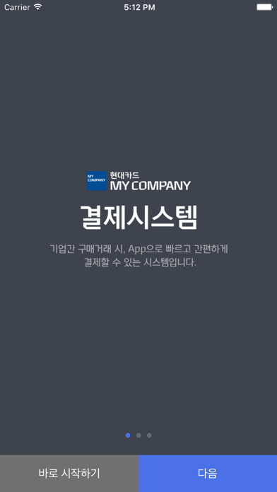 - MY COMPANY 결제시스템 앱은 최초 웹 홈페이지에서 회원가입 후 로그인할 수 있습니다.