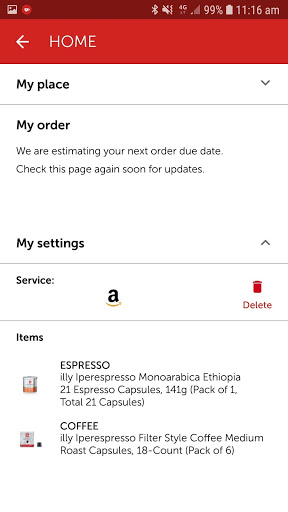 To take advantage of the automatic re-ordering, simply register with the illy portal and use your Amazon account to access the DRS service.