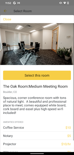 Intelligent Office helps businesses solve the issues they face every day, namely, finding convenient, secure, & professional work spaces. This app allows users to book a room right from the app as a guest or a member. Members new & old will love this convenient way to schedule & purchase meeting spaces. Each room has a listing of amenities to choose from that allows our user to customize their experience. Everything from witnesses to an in-room projector can be added depending on the room. Intelligent Offices rooms range from small spaces, perfect for one on one meetings, to large spaces, perfect for collaboration. The design is intuitive yet comprehensive. Users can see a listing of all past, future, & canceled bookings to make managing your spaces easy. Find our professional service and flexible workspace solutions at a virtual office near you! With this app, Intelligent Office introduces a new way to enhance your business!