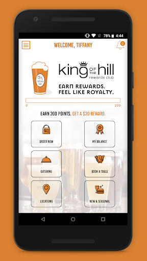 The King of the Hill Rewards App allows you to easily track your points and rewards, order online, book a table and stay connected to Iron Hill!