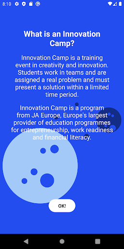 The JA Innovation Camp App will help JA Countries to run their on-site or virtual Innovation Camps. The app will guide the students through the steps to complete a given challenge and produce a solution.