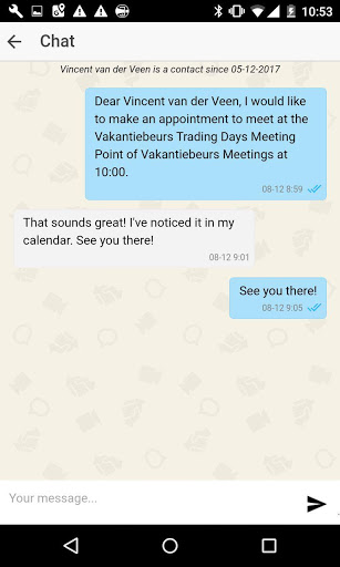 The Vakantiebeurs Trade Days App makes networking more fun and efficient. Tinder for business has never been easier: with a swipe you indicate whether you find a person interesting or not. View the pitches of other app users and make relevant connections that really counts. Thanks to the Vakantiebeurs Trade Days App you are easily accessible for business and always have access to your connections.