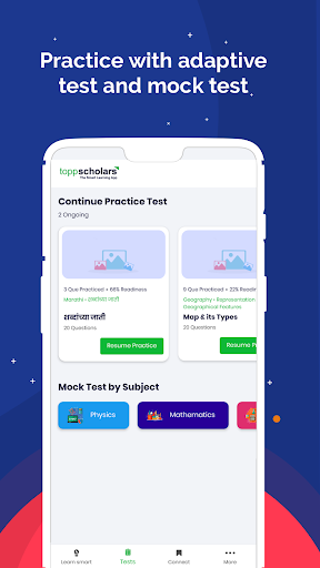📝 Adaptive Practice tests are a quick assessment based on the students learning patterns and adapt to the student's ability to solve questions successfully, allowing students to assess themselves and know their strengths and areas that need improvement.