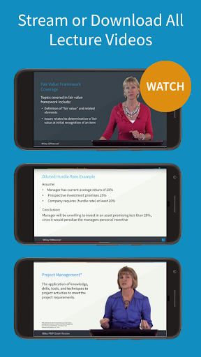 Turn downtime into study time. Stream or download all lecture videos, flashcards and access practice questions available in your desktop course. Track progress by syncing practice sessions across all devices.
