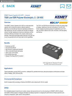Easily navigate KEMET Electronics's 500+ component datasheets by either product type or keyword search.