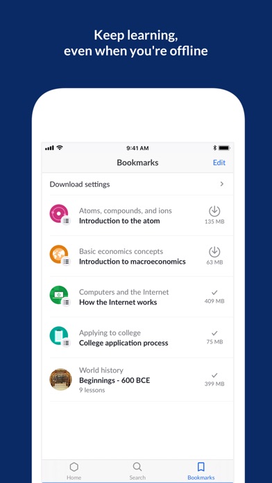 - Keep learning when you're offline: Bookmark and download your favorite content to watch videos without an internet connection.