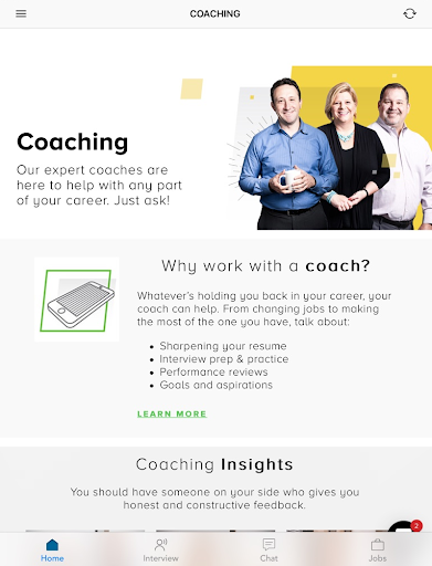 • Connect with a career coach - Discuss goals and build a strategy for success; all coaches are licensed and certified career experts and have a combined six decades of helping professionals like you.
