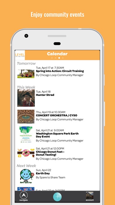 -Receive notifications from Level Office Community Managers of upcoming networking events, Lunch & Learns, and Happy Hours.